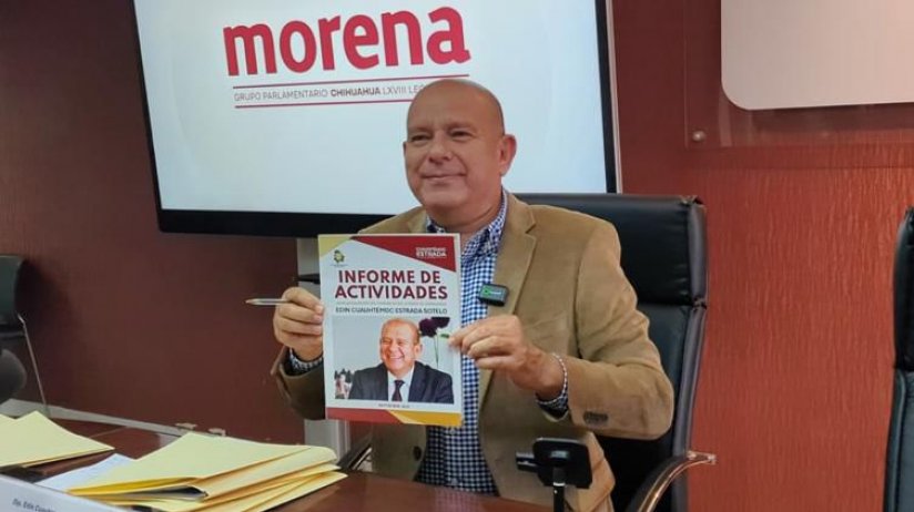 CHIHUAHUA, CHIH.- El diputado Cuauhtémoc Estrada Sotelo, coordinador del Grupo Parlamentario de Morena y representante del Distrito 08 de Ciudad Juárez en la Sexagésima Octava Legislatura del Congreso del Estado de Chihuahua, presentó su primer informe de trabajo legislativo, en el que destacó un año de resultados, diálogo constante con la ciudadanía y compromiso firme con los principios de la Cuarta Transformación.