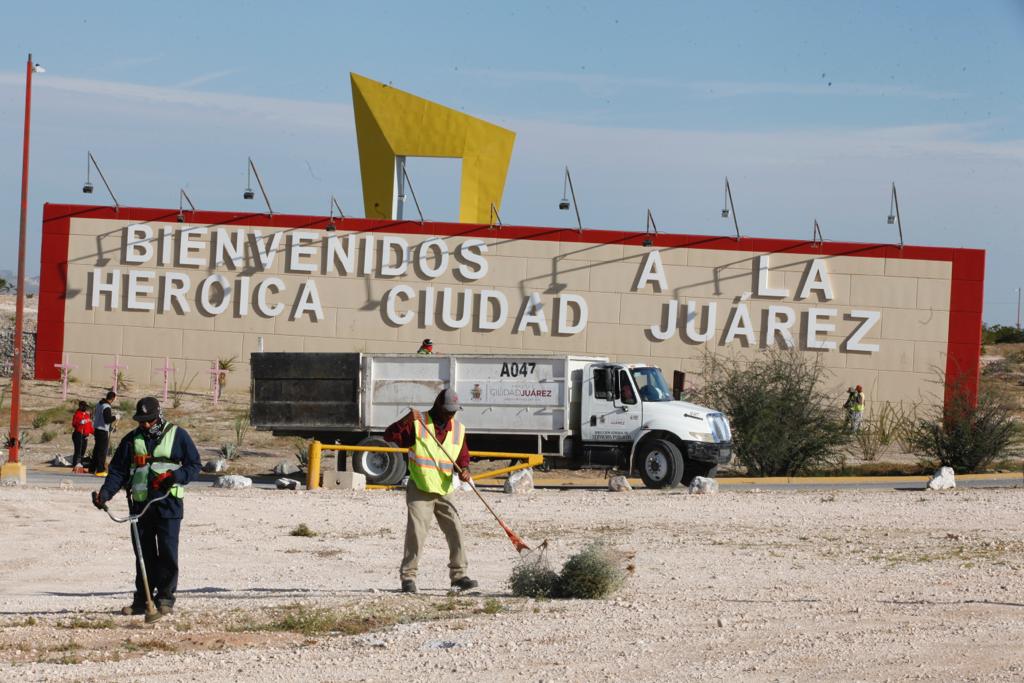 CD. JUAREZ, CHIH.- Con la intención de mejorar la imagen de la ciudad y ofrecer espacios limpios y agradables, el Presidente Municipal, Cruz Pérez Cuéllar dio arranque a la Cruzada por la Entrada de Juárez en la Glorieta del Kilómetro 20.