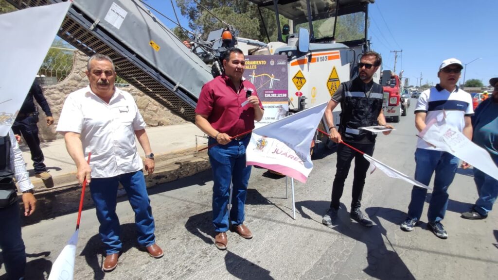 CD. JUAREZ, CHIH.- Este día el Presidente Municipal, Cruz Pérez Cuéllar, inició los trabajos del Programa de Rehabilitación de Vialidades con el banderazo de arranque de cuatro obras de repavimentación.