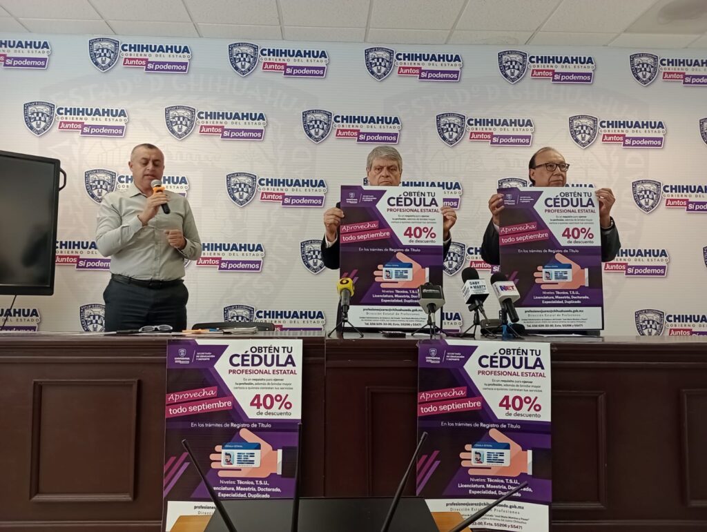 CD. JUAREZ, CHIH.- Esta mañana se dio a conocer que durante todo el mes de septiembre se estará realizando un descuento del 40 por ciento en las cedulas profesionales estatales.