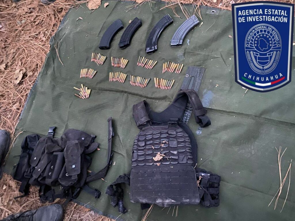 En el lugar, el Personal Militar aseguró un chaleco antibalas con 2 placas color negro, un portacargador, cinco cargadores calibre 7.62×39 y 90 cartuchos del mismo calibre.