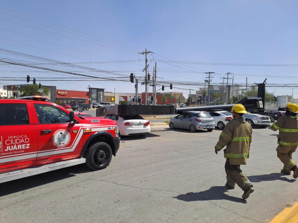 CD. JUAREZ, CHIH.- La tarde de hoy se registró el desplome de un espectacular de 20 metros de altura, ubicado en Avenida Antonio J. Bermúdez y Bulevar Tomás Fernández, en el Parque Industrial Bermúdez. El colapso fue causado por el debilitamiento de la estructura, agravado por los fuertes vientos, y afectó a cuatro vehículos que se encontraban estacionados en la zona.