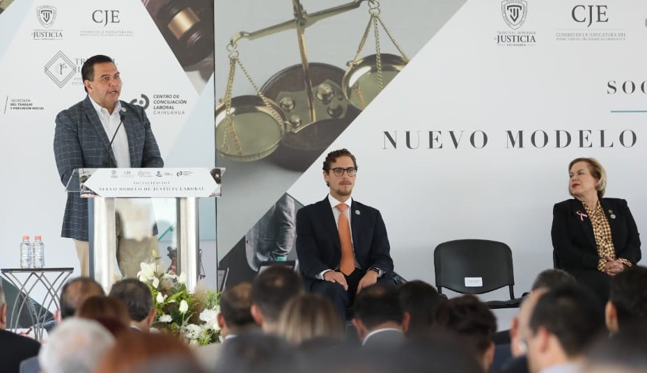 CD. JUAREZ, CHIH.- El presidente Municipal, Cruz Pérez Cuéllar acompañó hoy a la Gobernadora María Eugenia Campos Galván a la presentación del Nuevo Modelo de Justicia Laboral, el cual tendrá como objetivo eficientar los procesos de conciliación laboral en el Estado.