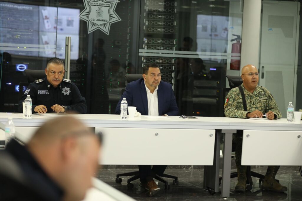 CD. JUAREZ, CHIH.- El Presidente Municipal, Cruz Pérez Cuéllar, presidió esta mañana la reunión de la Mesa de Seguridad y Justicia en el Centro de Emergencia y Respuesta Inmediata (CERI), donde se evaluaron los resultados de las diversas corporaciones de seguridad.