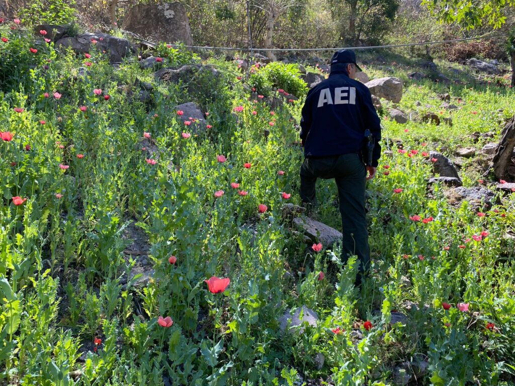 Durante labores de investigación, personal de la Agencia Estatal de Investigación detectaron y procedieron a la destrucción de un plantío de amapola por el lugar conocido como La Minita.