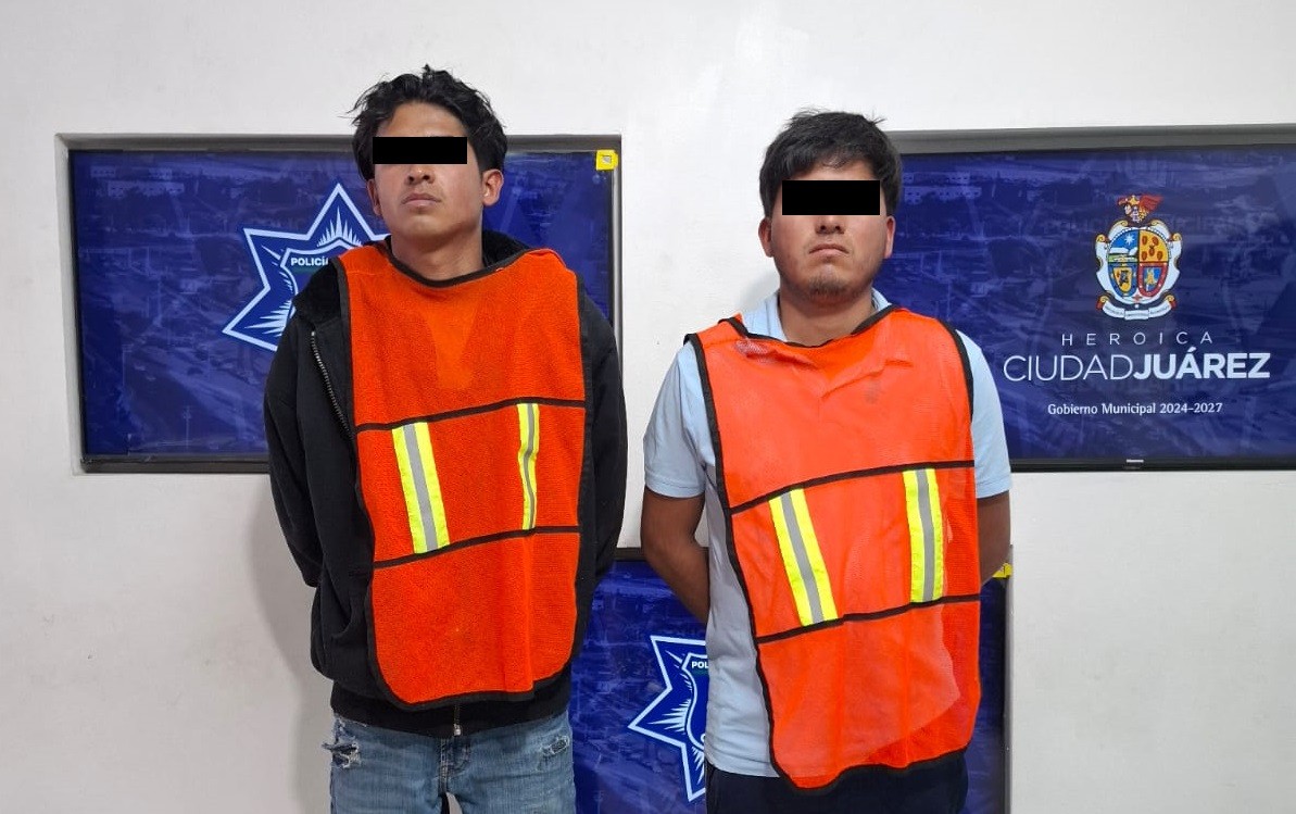CD. JUAREZ, CHIH.- Elementos de la Secretaría de Seguridad Pública Municipal, capturaron a Efrén Eduardo Z. y Ronaldo Z. H., por su presunta responsabilidad en la comisión del delito de desobediencia y resistencia de particulares, mismos que serán investigados por su probable participación en varios asaltos a tiendas de conveniencia.