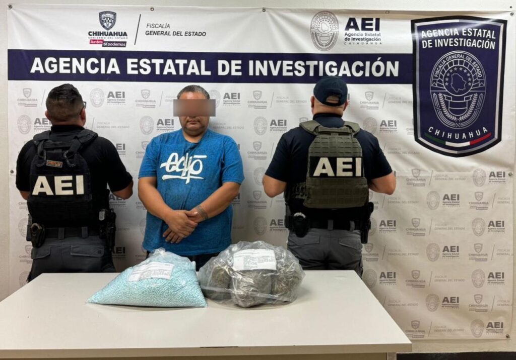 CD. JUAREZ, CHIH.- Por delitos contra la salud, fue detenido y consignado al Ministerio Público Federal, un sujeto identificado como Jesús Gabriel J. R., en Ciudad Juárez, Chihuahua, a quien le aseguraron 8.160 kilogramos de fentanilo, cuyo valor se estima en 240 mil dólares o su equivalente en 4.6 millones de pesos.