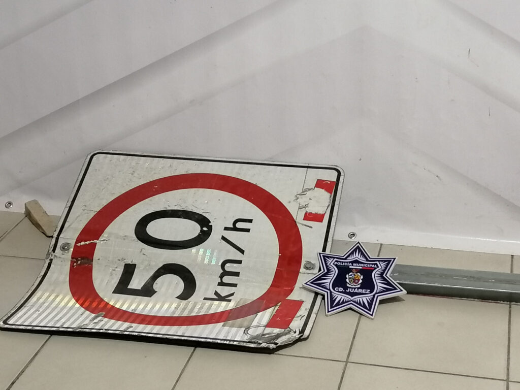 Alexis S. A., de 23 años, fue arrestado en el cruce de las calles Eje Vial Juan Gabriel y Ramón Rivera Lara, en la colonia Parajes Industriales, tras ser sorprendido arrastrando un señalamiento vial que momentos antes había arrancado del lugar donde estaba colocado.