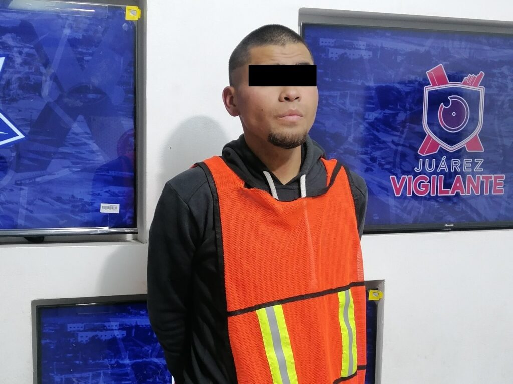CD. JUAREZ, CHIH.- Elementos de la Secretaría de Seguridad Pública Municipal, capturaron a Raúl H. H., por su presunta responsabilidad en la comisión de delitos contra la salud, mismo que será investigado por su probable participación en dos asaltos con violencia en tiendas de conveniencia.