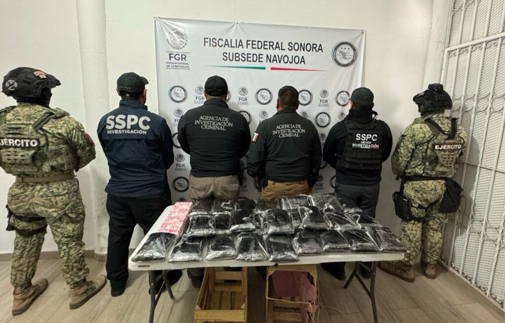 SONORA, MEXICO.-En el marco de la Estrategia Nacional de Seguridad y resultado del trabajo coordinado en el estado de Sonora, elementos de la Agencia de Investigación Criminal (AIC) de la Fiscalía General de la República (FGR), Secretaría de Seguridad y Protección Ciudadana (SSPC), Secretaría de la Defensa Nacional (Defensa), junto con Secretaría de Marina (Semar) y Guardia Nacional (GN), detuvieron a una persona que transportaba 32 kilos de fentanilo ocultos en el interior de un tráiler cargado con cajas de nopales.