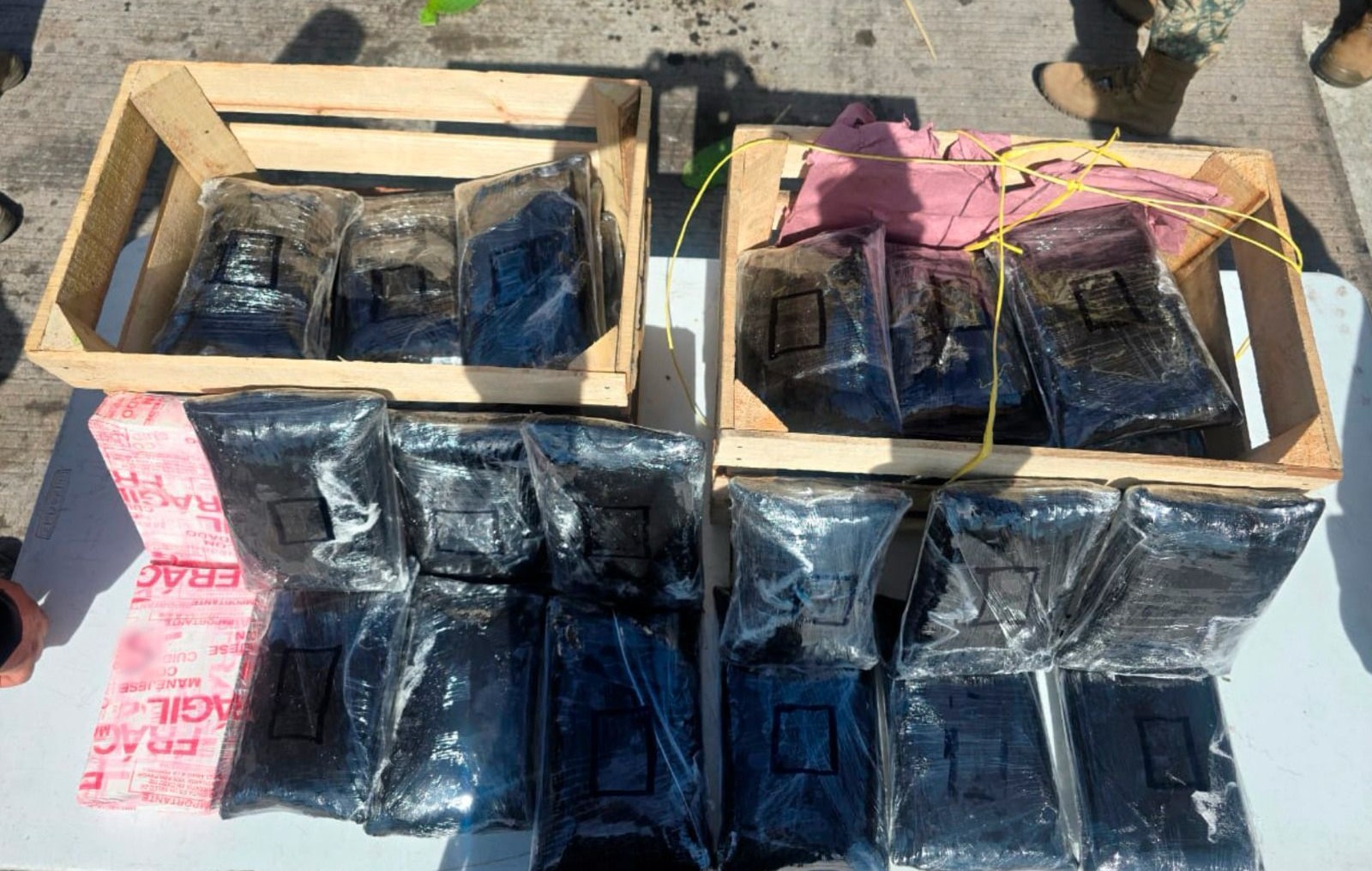 SONORA, MEXICO.-En el marco de la Estrategia Nacional de Seguridad y resultado del trabajo coordinado en el estado de Sonora, elementos de la Agencia de Investigación Criminal (AIC) de la Fiscalía General de la República (FGR), Secretaría de Seguridad y Protección Ciudadana (SSPC), Secretaría de la Defensa Nacional (Defensa), junto con Secretaría de Marina (Semar) y Guardia Nacional (GN), detuvieron a una persona que transportaba 32 kilos de fentanilo ocultos en el interior de un tráiler cargado con cajas de nopales.