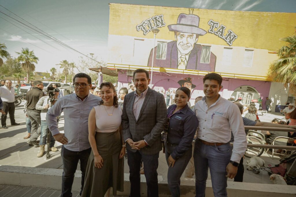 CD. JUAREZ, CHIH.- En el marco del Festival del Pachuco, el Presidente Municipal, Cruz Pérez Cuéllar, develó un mural alusivo al comediante Germán Cipriano Teodoro Gómez-Valdés y Castillo «Tin Tan» y una placa que establece el 19 de septiembre como el «Día del Pachuco Mayor», en honor al juarense por adopción.