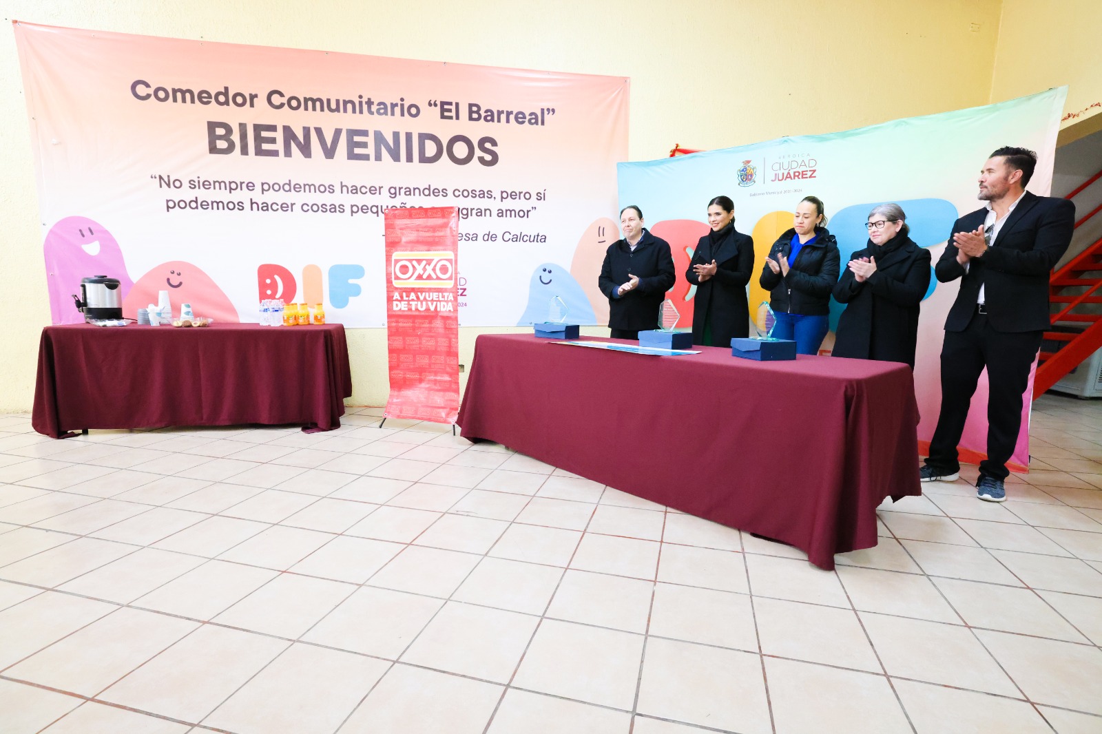 La entrega del cheque simbólico y de reconocimientos a las tiendas con mayor recaudación monetaria se realizó en el comedor Comunitario El Barreal, ubicado a espaldas del parque Monumento a Benito Juárez.