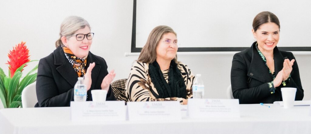 Durante el evento,Martha Teresa González, directora del Centro de Atención a la Mujer Trabajadora de Chihuahua, dio una introducción, diagnóstico, definición de la problemática, plan de acción, instituciones aliadas, estrategias y la mención de colaboradoras de la agenda,.