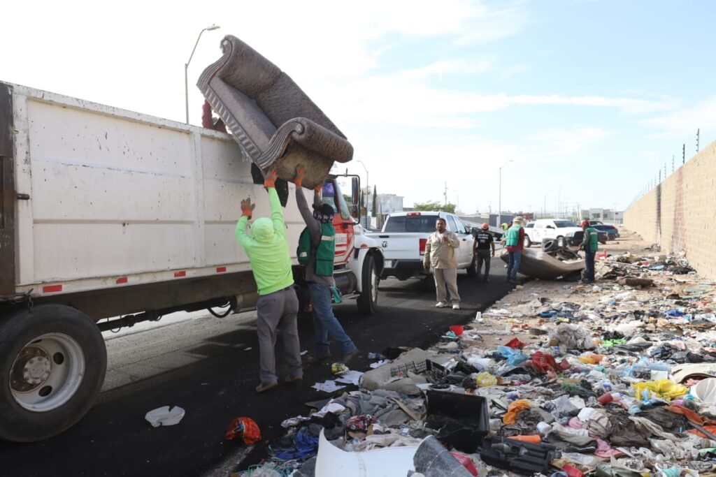 CD. JUAREZ, CHIH.- La Dirección de Limpia del Gobierno Municipal llevó a cabo este jueves un operativo especial de limpieza en la calle Humariza, cruce con la avenida Ramón Rayón, atendiendo así quejas ciudadanas sobre la acumulación de desechos en el área.