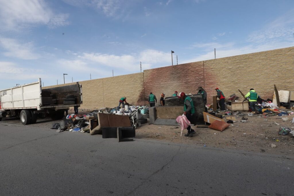 CD. JUAREZ, CHIH.- La Dirección de Limpia del Gobierno Municipal llevó a cabo este jueves un operativo especial de limpieza en la calle Humariza, cruce con la avenida Ramón Rayón, atendiendo así quejas ciudadanas sobre la acumulación de desechos en el área.