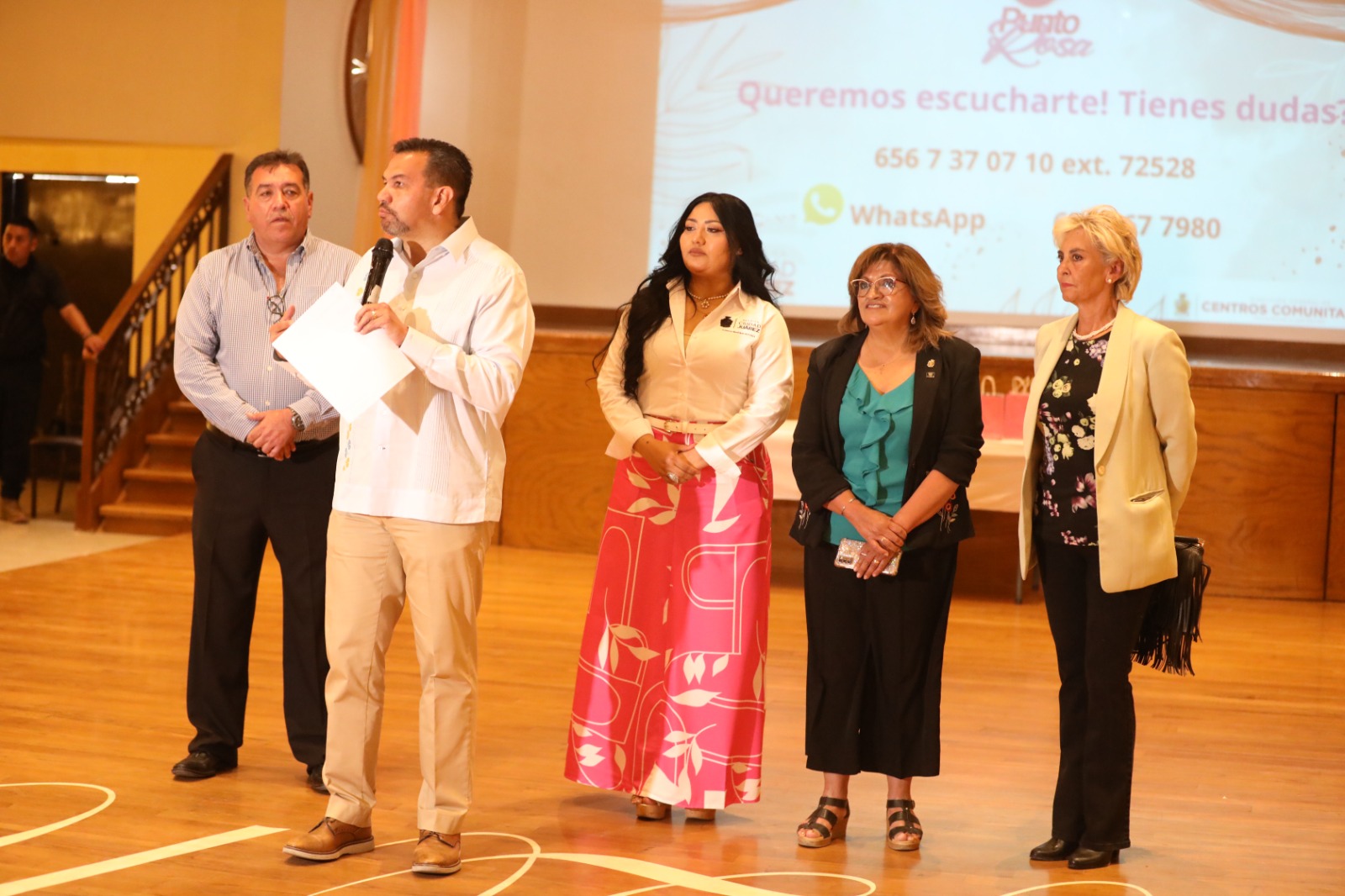 CD. JUAREZ, CHIH.- El Presidente Municipal, Cruz Pérez Cuéllar, asistió al arranque de los talleres y conferencias del programa “Punto Rosa” implementado por la Dirección de Centros Comunitarios, el cual se llevó a cabo este día en las instalaciones del Sindicato Único de Trabajadores del Municipio (SUTM).