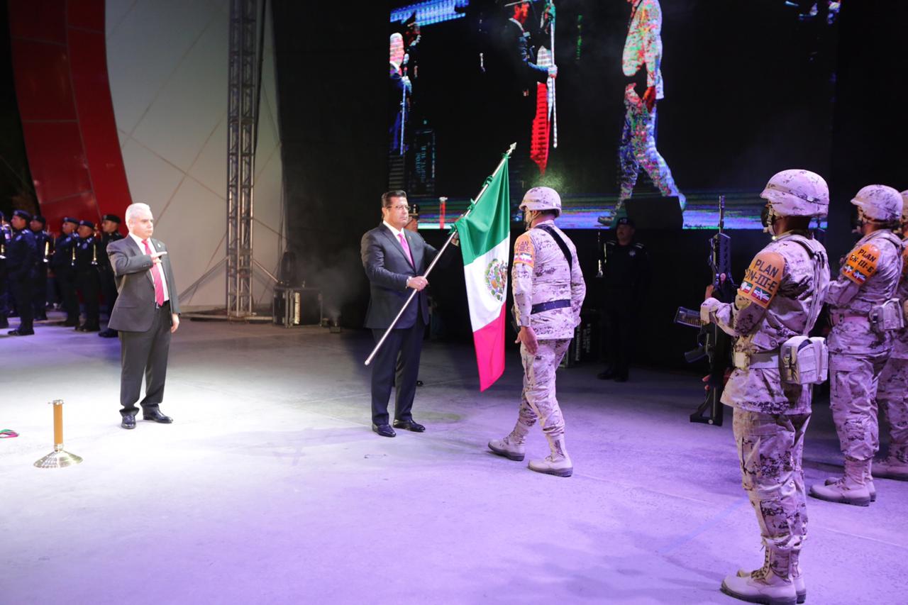 En el marco de este evento, los honores a la Bandera estuvieron en manos de la Banda de Guerra de la Secretaría de Seguridad Pública Municipal (SSPM), así como la Escolta del Noveno Regimiento de Caballería Motorizado de la Secretaria de la Defensa Nacional.