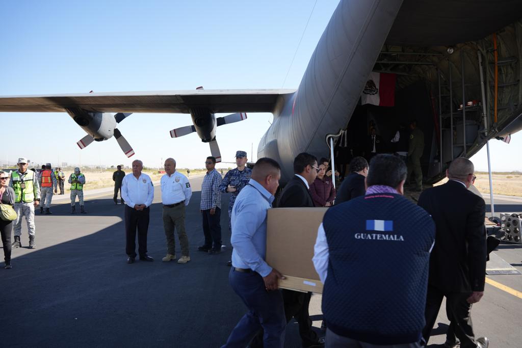 La mañana de este martes, funcionarios del INM encabezados por su titular, Francisco Garduño Yáñez, se trasladaron al Aeropuerto Internacional “Abraham González” de Ciudad Juárez, donde arribaron las carrozas funerarias que trasladaban a las personas fallecidas, 17 de Guatemala y seis de Honduras.