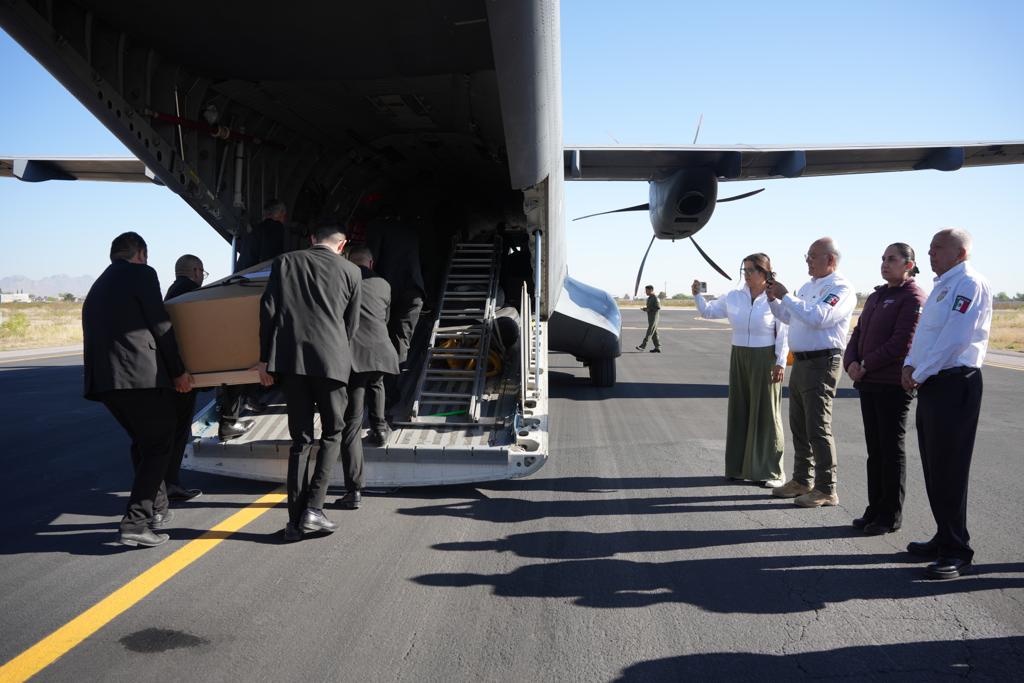 Autoridades consulares que corroboraron la documentación y acreditación de los expedientes de cada uno de ellos, estuvieron presentes durante todo el proceso hasta que los féretros fueron trasladados en dos aviones de la Fuerza Aérea Mexicana (FAM).