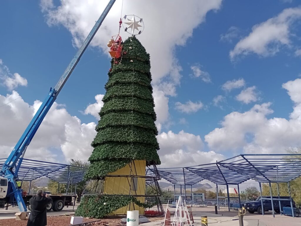 “Tratamos de hacer primeramente la estructura, que quedara bien cimentada, en el sentido de que se pueda reutilizar cuando termine la Navidad, tiene una base octagonal y va a ir adornado con esferas gigantes rojas y doradas. El próximo sábado vamos a hacer la primera prueba de encendido”, comentó.