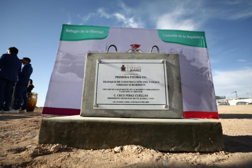 CD. JUAREZ, CHIH.-Acompañado de miles de juarenses, el Presidente Municipal, Cruz Pérez Cuéllar, colocó la primera piedra del Parque Urbano Suroriente, obra que marca uno de los cambios más importantes para Ciudad Juárez.