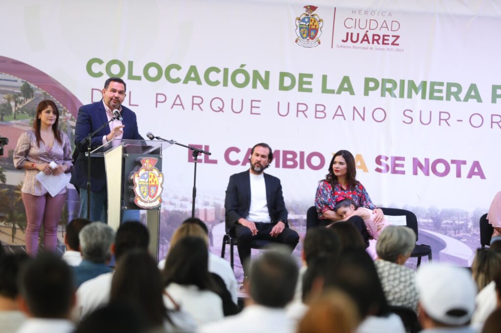 El Presidente Pérez Cuéllar, comentó que este evento marca un paso histórico en la transformación de Juárez, dándole al suroriente de la ciudad la importancia que merece, pues el compromiso del Gobierno Municipal es que el cambio se note, pero también permanezca.