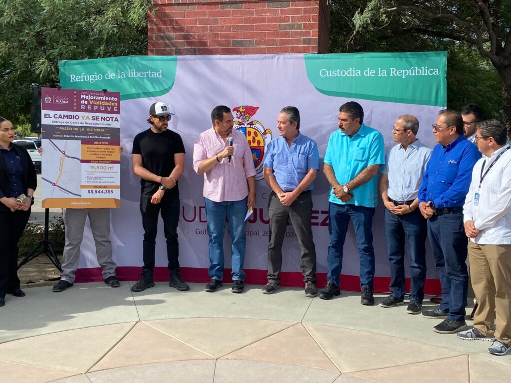 El alcalde de Ciudad Juárez realizó la entrega de la avenida Paseo de la Victoria, en dónde se realizaron trabajos de repavimentación desde el tramo de las avenidas Ejército Nacional hasta la Teófilo Borunda, esto gracias al programa de mejoramiento de vialidades REPUVE, contando con una inversión de 5 millones 994 mil 355 pesos.