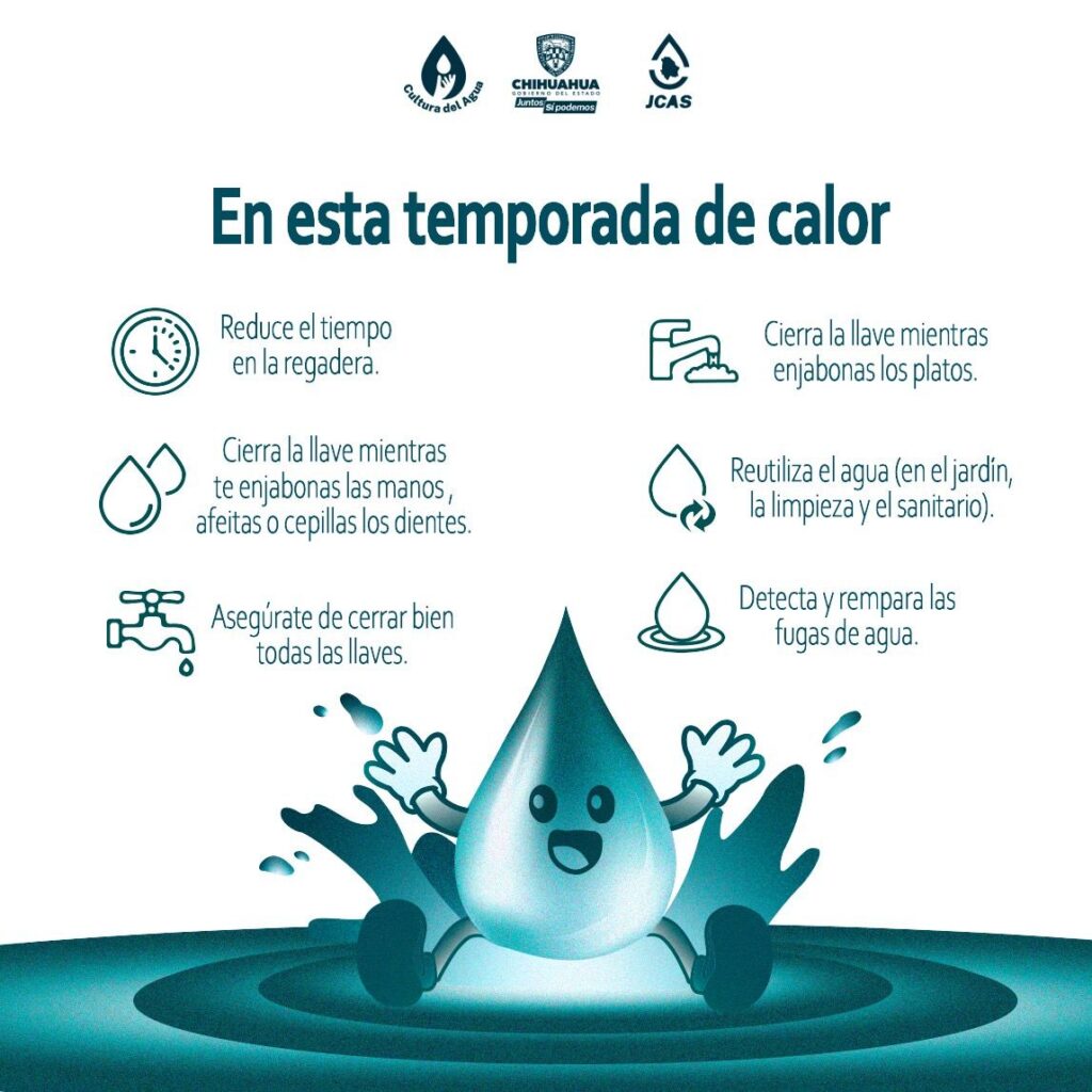 CHIHUAHUA.- Con el aumento de las temperaturas debido a la ola de calor que se extiende sobre el Estado de Chihuahua, la Junta Central de Agua y Saneamiento (JCAS) emite una serie de recomendaciones para concientizar a la ciudadanía sobre la importancia de evitar el desperdicio de agua potable.