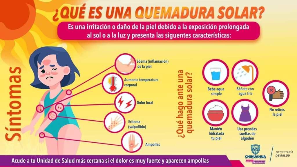 El epidemiólogo explicó que las quemaduras solares se caracterizan por síntomas como enrojecimiento de la piel, inflamación, dolor local y aparición de ampollas, cuando se permanece a la intemperie sin protección especial.