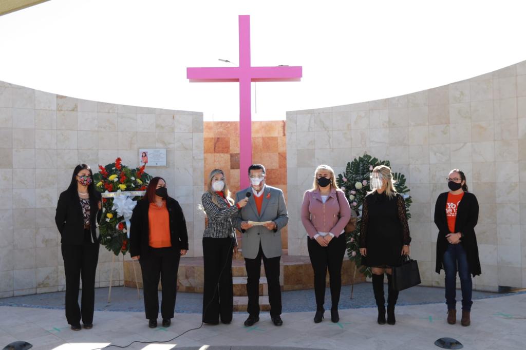 CD. JUAREZ, CHIH.- Dentro del marco del Día Internacional para la Eliminación de la Violencia Contra Mujeres, el Presidente Municipal Armando Cabada Alvídrez encabezó la colocación de una ofrenda floral en el Memorial Víctimas de Feminicidio Campo Algodonero.