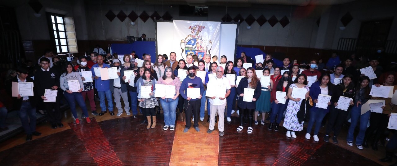 La ceremonia se llevó a cabo en el Centro Municipal de las Artes, mientras que los graduandos son personal de las direcciones de Obras Públicas, de Transparencia y de Servicios Públicos Municipales, así como sus familias.