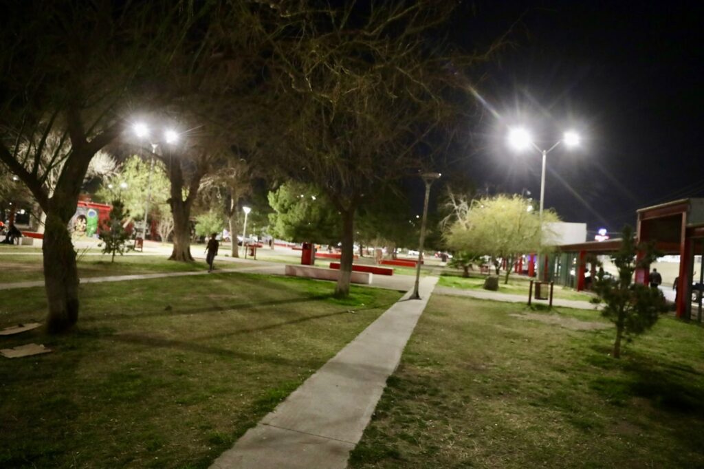 CD. JUAREZ, CHIH.- Con el encendido de 136 luminarias LED, el Presidente Municipal, Cruz Pérez Cuéllar, entregó la rehabilitación e iluminación integral de la Plaza y el Monumento a Benito Juárez, uno de los espacios más emblemáticos del Centro Histórico.