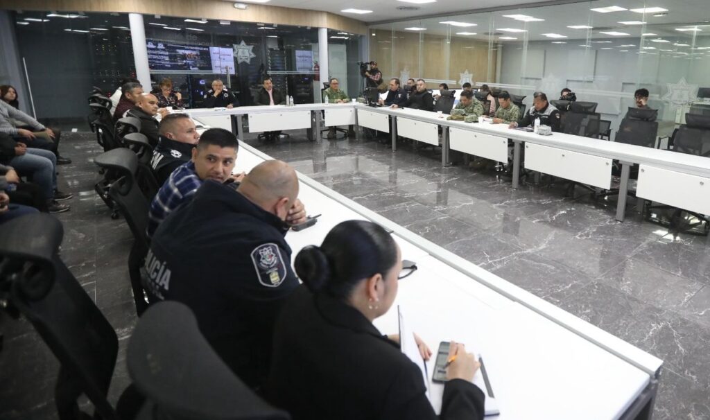 CD. JUAREZ, CHIH.- Este día, el Presidente Municipal, Cruz Pérez Cuéllar, encabezó la reunión de la Mesa de Coordinación de la Paz, efectuada en el Centro de Emergencia y Respuesta Inmediata de la Secretaría de Seguridad Pública Municipal, en la que se evaluaron avances y se coordinaron estrategias entre las distintas corporaciones encargadas de garantizar la seguridad en la ciudad.