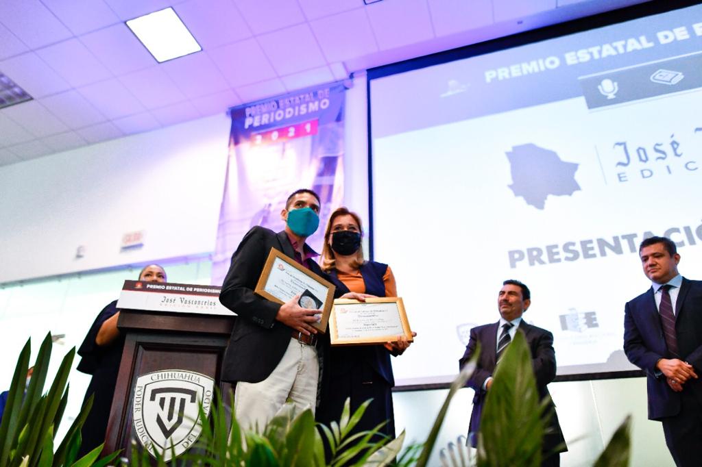 Asimismo, durante su discurso, Maru Campos destacó la gran labor que día con día realizan los periodistas chihuahuenses al enfrentarse a la represión de la libertad de expresión, así como las condiciones que imperan derivadas de la pandemia por COVID-19. Por su parte, Campos Galván conminó a los nominados y ganadores a continuar trabajando para ejercer su profesión, de la mejor manera posible.