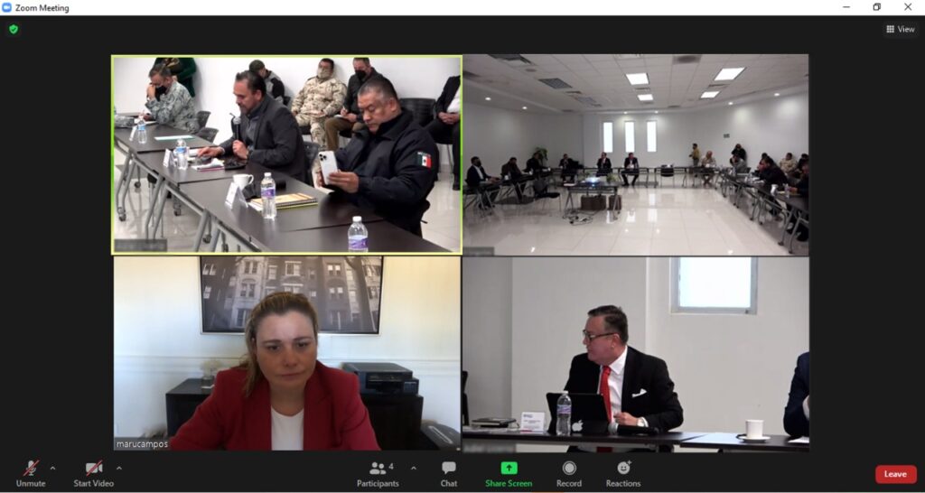 En la sesión de la Mesa Estatal de Seguridad, la Gobernadora estuvo acompañada de manera virtual por autoridades del orden federal por parte de la Fiscalía General de la República, el Ejercito Mexicano y la Guardia Nacional; el presidente municipal de Ciudad Juárez, Cruz Pérez Cuéllar; el Fiscal General del Estado, Roberto Fierro Duarte; el secretario de Seguridad Pública, Gilberto Loya Chávez y el secretario general de Gobierno, César Jáuregui Moreno; donde además se tuvo la oportunidad analizar los hechos más relevantes ocurridos en la frontera durante los últimos días.