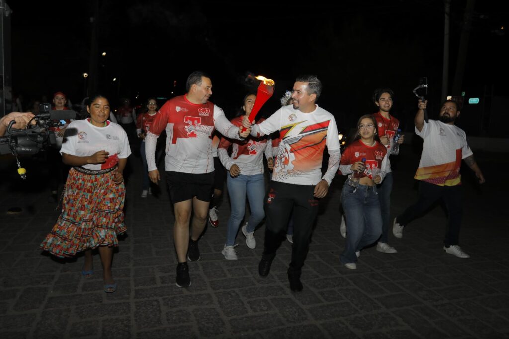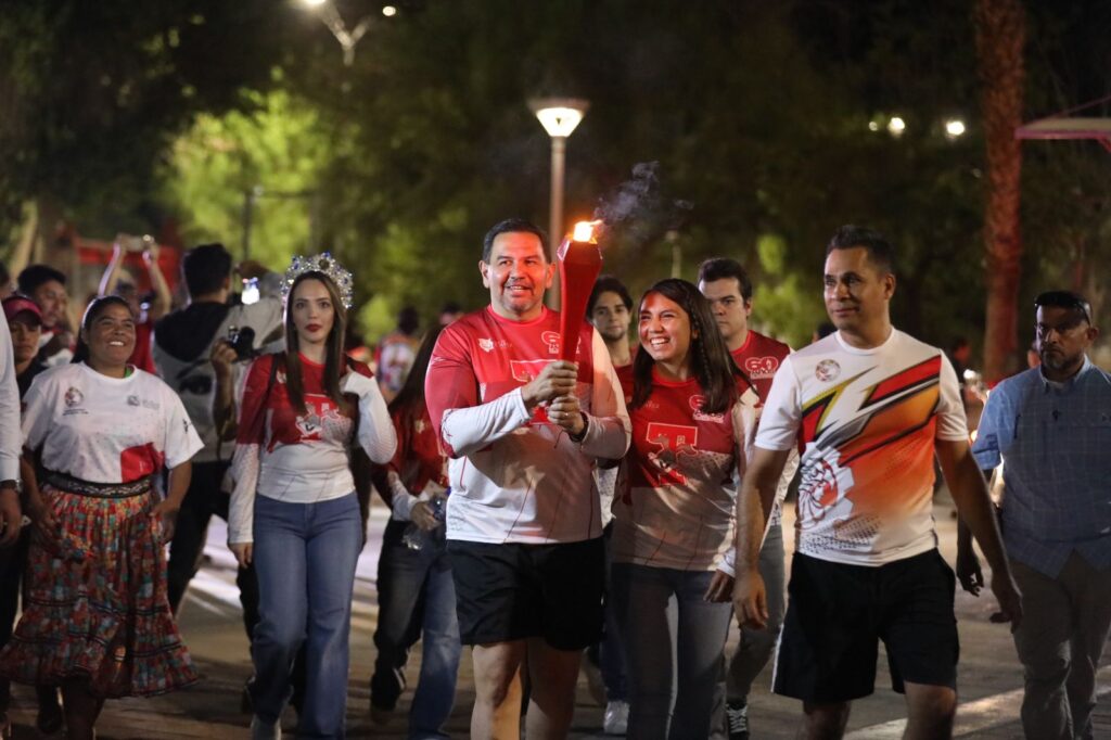 En esta ceremonia el alcalde recibió la antorcha del «Fuego Nuevo» de manos de la deportista Susana Rosales del Tecnológico de Durango, que fue la sede de los anteriores juegos.