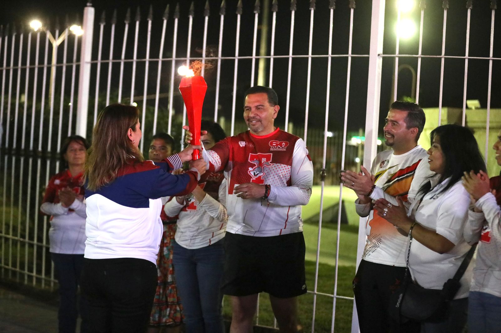 Ciudad Juárez es ahora la sede de los intertecnológicos y por ello el Presidente Pérez Cuéllar recibió la antorcha, que tras un recorrido con ella la entregó a un deportista de la institución juarense.