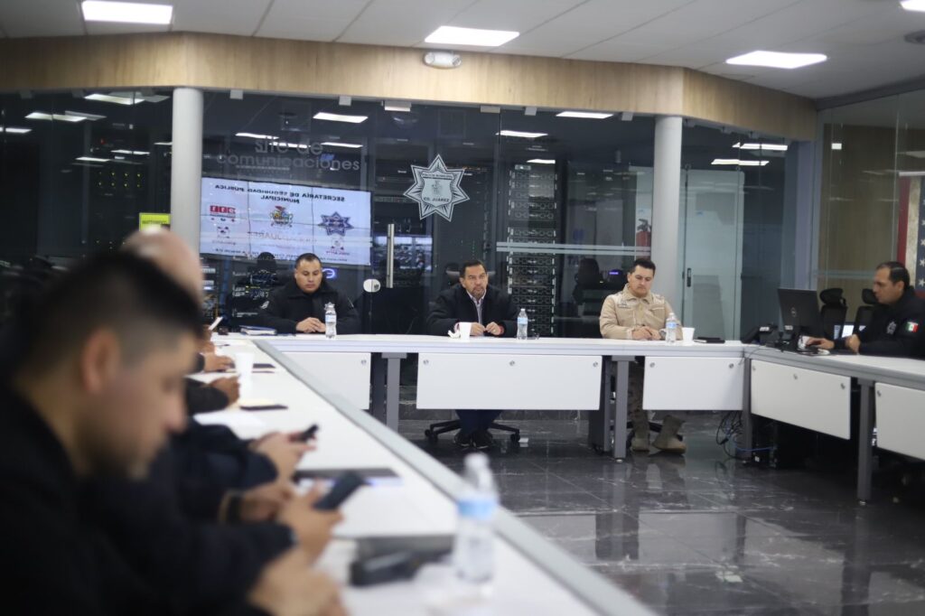 CD. JUAREZ, CHIH.- El Presidente Municipal, Cruz Pérez Cuéllar, encabezó la reunión de la Mesa de Coordinación para la Construcción de la Paz, que se llevó a cabo en el Centro de Emergencia y Respuesta Inmediata de la Secretaría de Seguridad Pública Municipal.