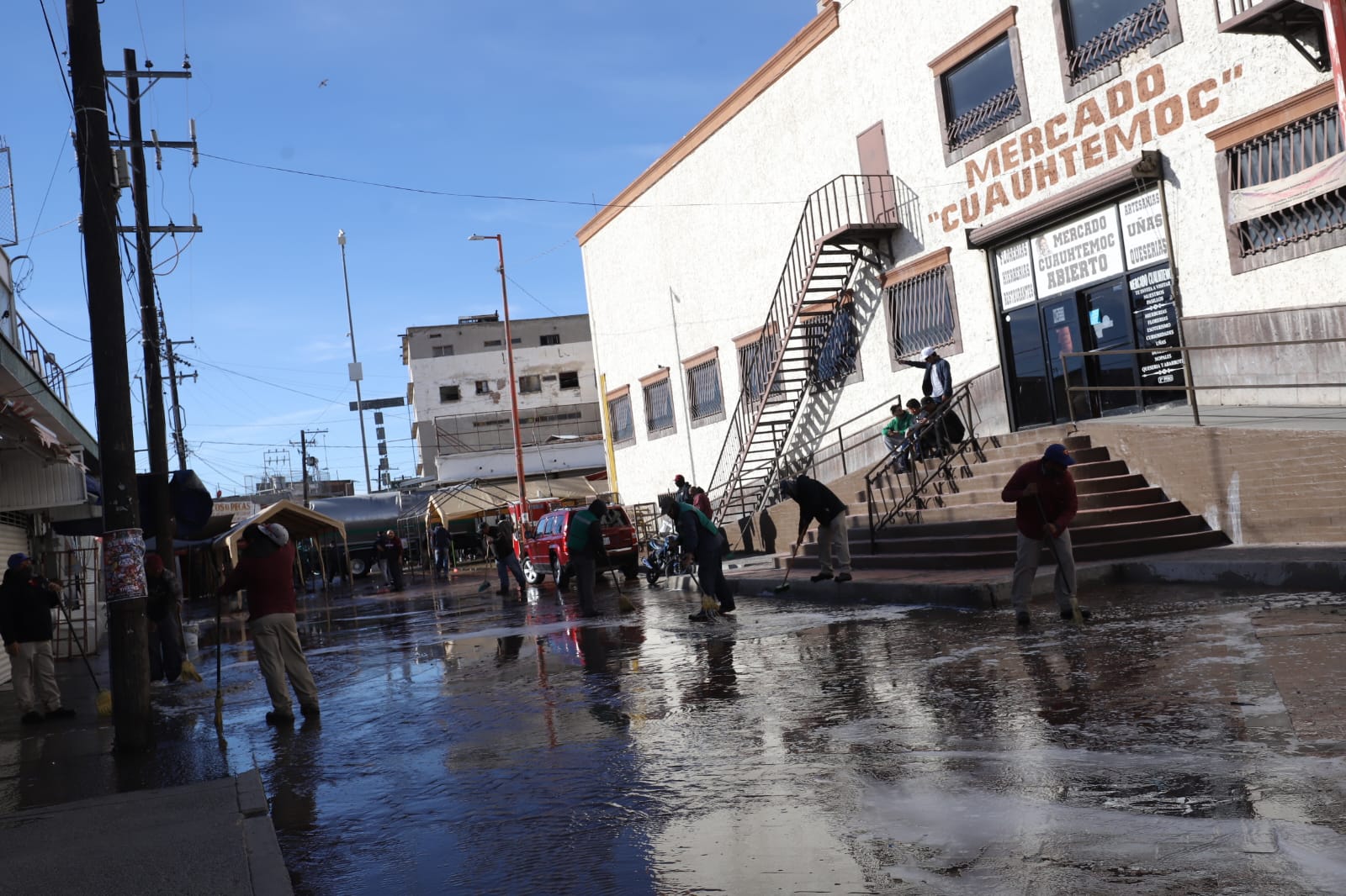 También se hizo la limpieza en el Mercado Reforma y de manera simultánea sobre la avenida 16 de Septiembre, desde la Mariscal hasta la calle Francisco I. Madero.