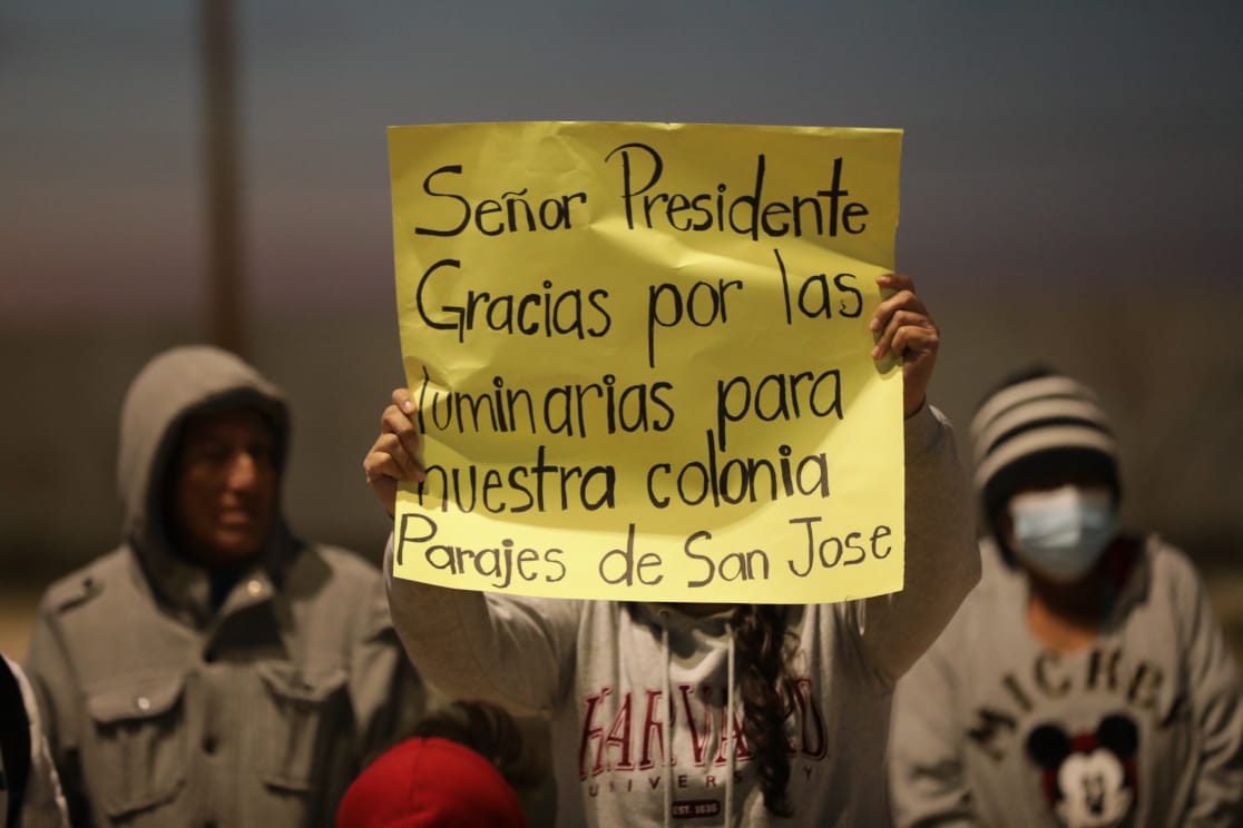 CD. JUAREZ, CHIH.- Este martes por la noche, el Presidente Municipal, Cruz Pérez Cuéllar, encabezó la entrega de nuevas luminarias en las colonias Parajes de San José y Valle de Fundadores, como parte de las acciones para fortalecer el alumbrado público y mejorar la seguridad en estos sectores de la ciudad.