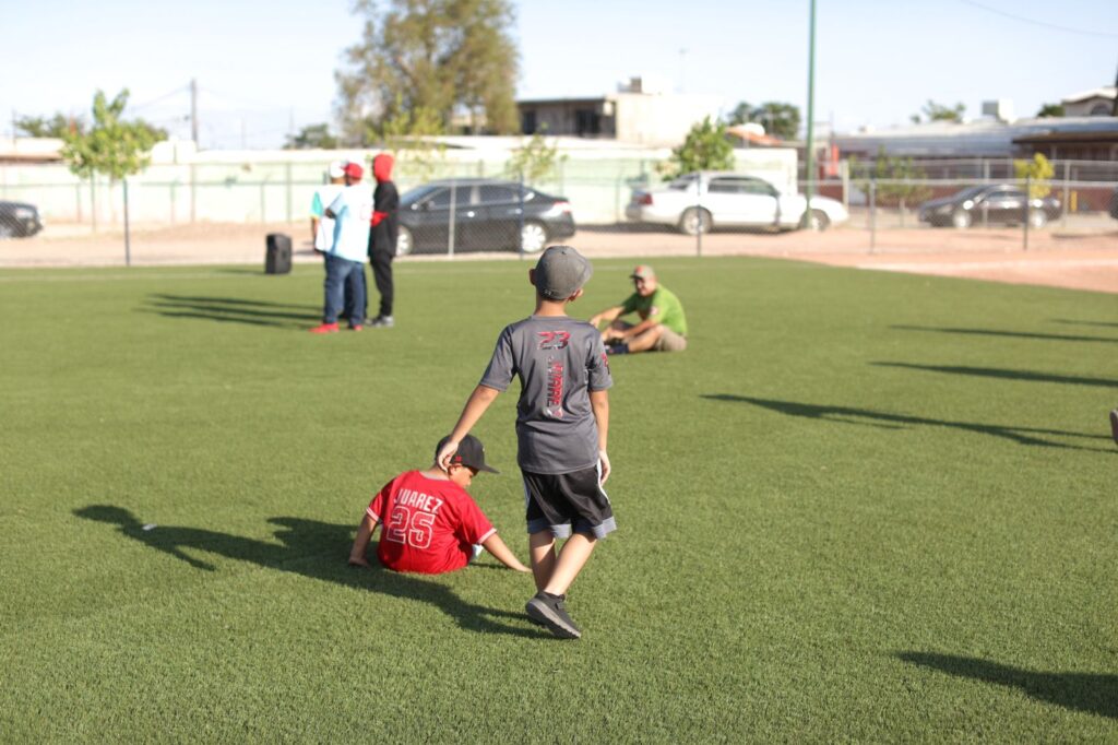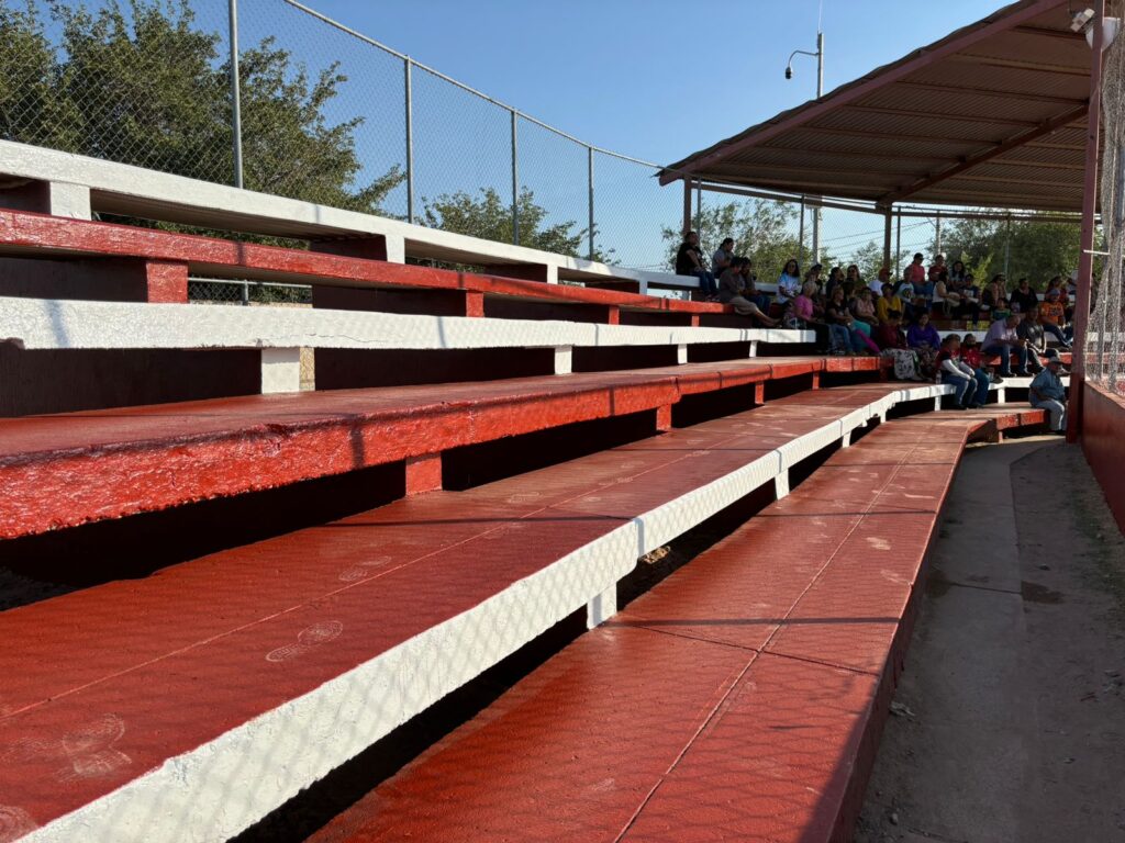 También se colocó pintura en gradas del campo de beisbol y en la barda; se repararon y pintaron canastas de basquetbol, columpios, resbaladillas, mobiliario infantil, cancha, jardineras y bancas.