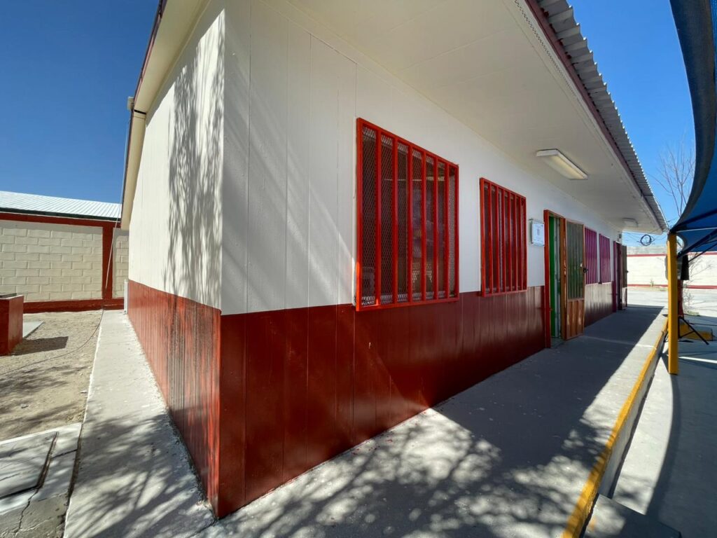 CD. JUAREZ, CHIH.- Con la pintura y el resane de toda la escuela, sistema eléctrico renovado y la colocación de lámparas led para el alumbrado, fue entregada por el Gobierno Municipal la rehabilitación del Jardín de Niños Bertha Von Glümer, ubicado en la colonia Ampliación Fronteriza.
