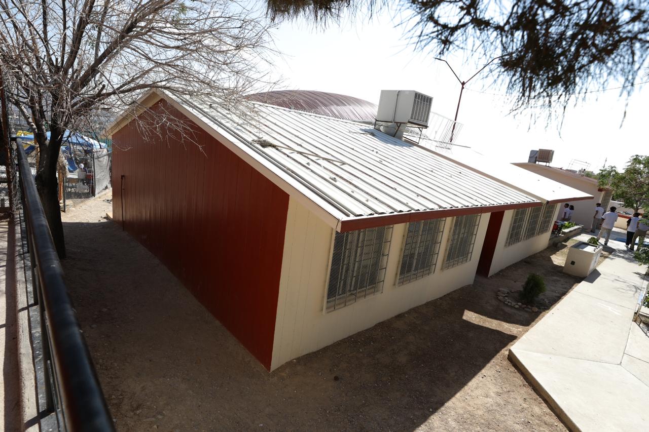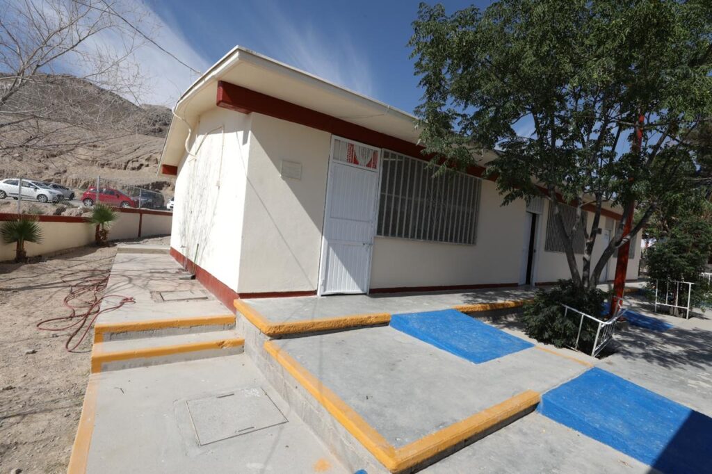 CD. JUAREZ, CHIH.- Con la construcción de un muro perimetral que incluyó malla ciclónica, la colocación de postes y alumbrado, el resane de paredes, de pintura general y la dotación de equipo de cómputo, fue rehabilitada por el Gobierno Municipal la Escuela Primaria Indígena “Adelina Romero Fontes”, en la colonia Tarahumara.