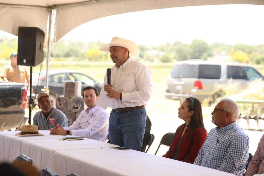 CD. JUAREZ, CHIH.-En un evento realizado en el ejido San Isidro, el Presidente Municipal, Cruz Pérez Cuéllar, presidió este día la entrega simbólica de solución nutritiva a productores del Valle de Juárez.