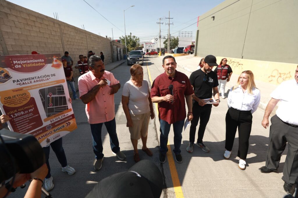 CD. JUAREZ, CHIH.- Esta mañana el Presidente Municipal, Cruz Pérez Cuéllar, realizó la entrega oficial de los trabajos hechos en la calle Argelia Manriquez, dentro del programa de Mejoramiento de Vialidades, cuyo objetivo es concentrar todos los esfuerzos para lograr cambios en poco tiempo.