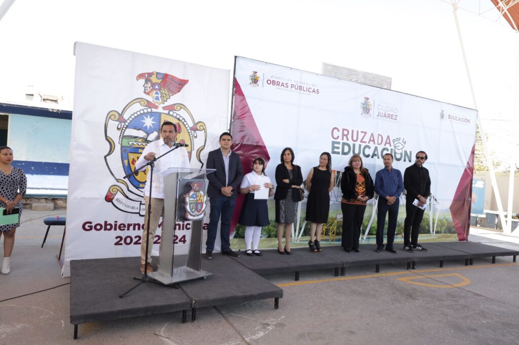 CD. JUAREZ, CHIH.- El Presidente Municipal, Cruz Pérez Cuéllar, refrendo su iniciativa para seguir impulsando la educación pública y generar espacios dignos para los niños y jóvenes juarenses, a fin de brindarles mejores oportunidades para la superación personal.