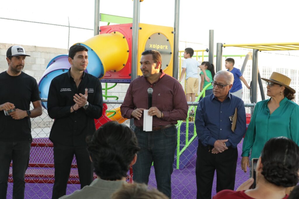 CD. JUAREZ, CHIH.- Siendo parte de los proyectos del Presupuesto Participativo, esta tarde el Presidente Municipal, Cruz Pérez Cuéllar, hizo la entrega de los parques Banus y Tres Cantos, los cuales fueron rehabilitados para los vecinos de los fraccionamientos Banus y Jardines de San Patricio I.