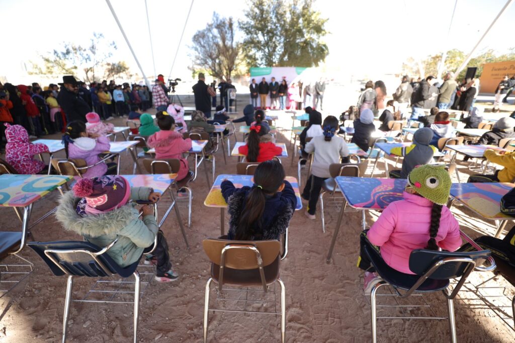 En esta escuela también entregaron mesabancos donados por la asociación civil Vamos por Juárez.