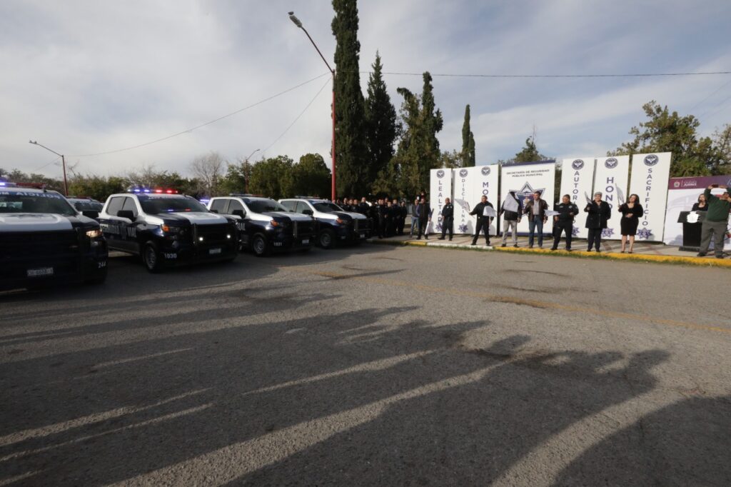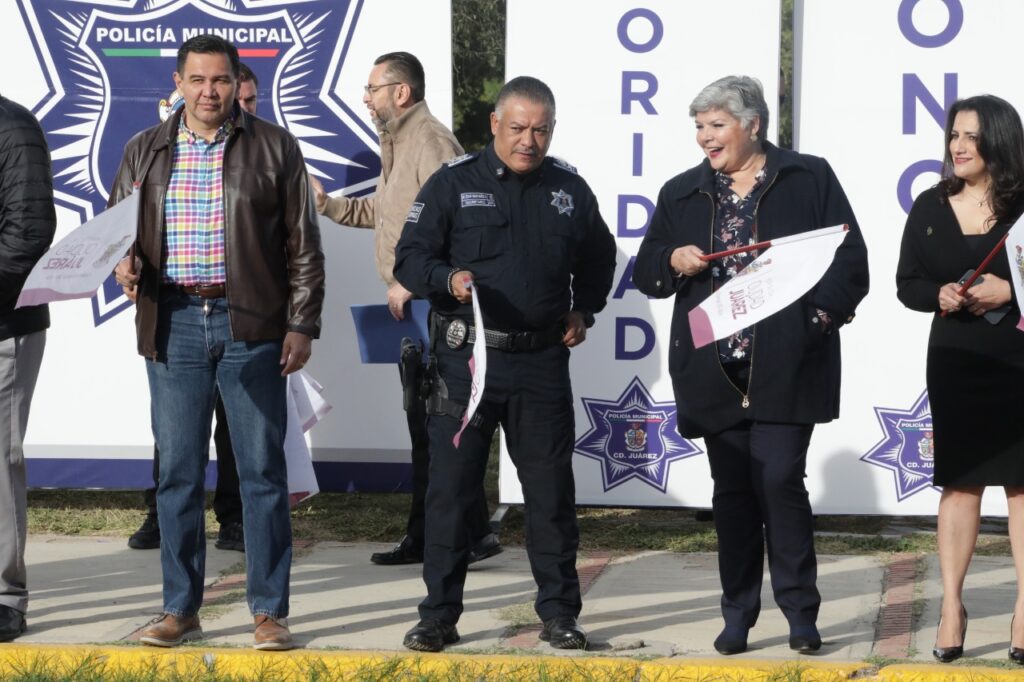 CD. JUAREZ, CHIH.- Como parte de las acciones que se realizan para fortalecer las corporaciones en beneficio de la comunidad, el Presidente Municipal, Cruz Pérez Cuéllar, entregó este día 100 unidades a la Secretaría de Seguridad Pública Municipal (SSPM).